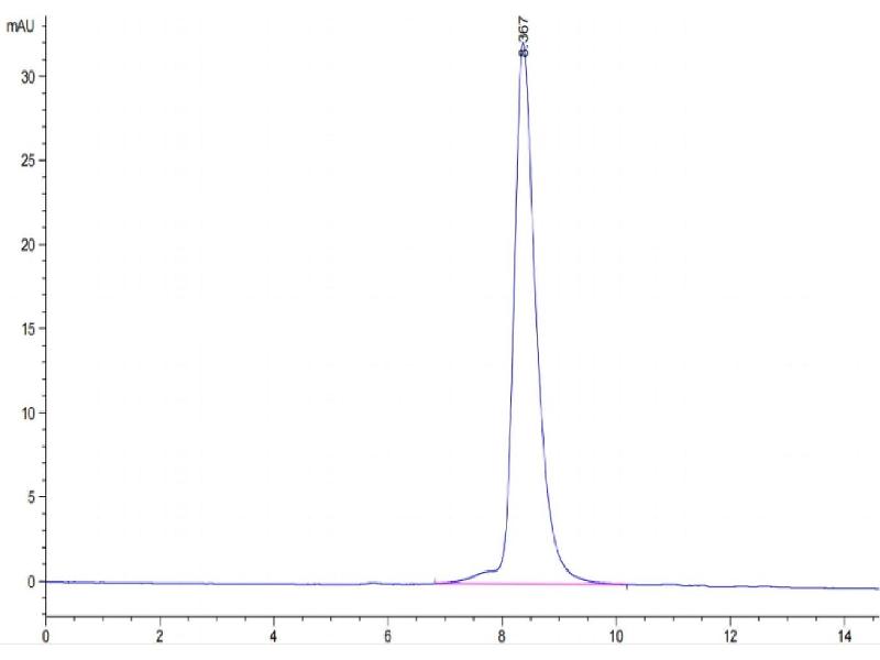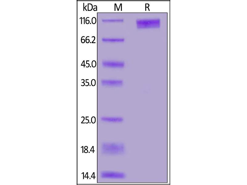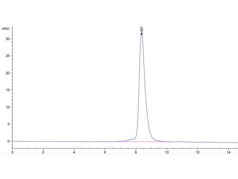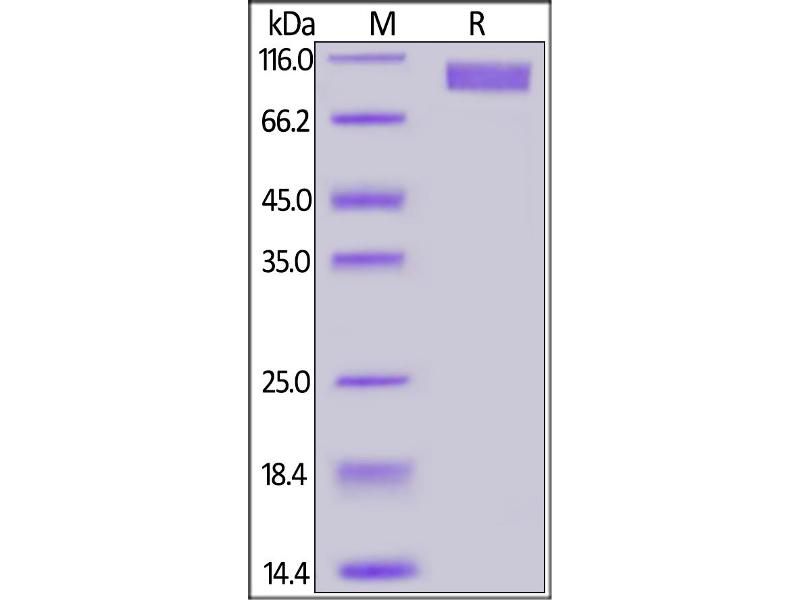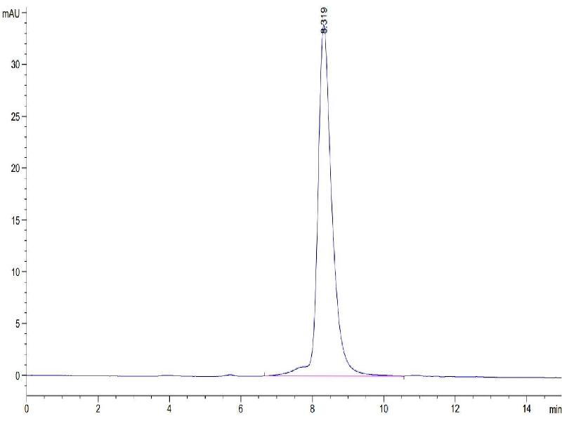 The purity of the protein is greater than 95 % as determined by SDS-PAGE and Coomassie blue staining.