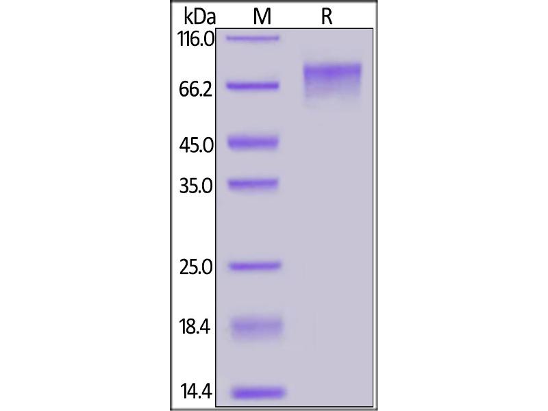 The purity of the protein is greater than 85 % as determined by SDS-PAGE and Coomassie blue staining.