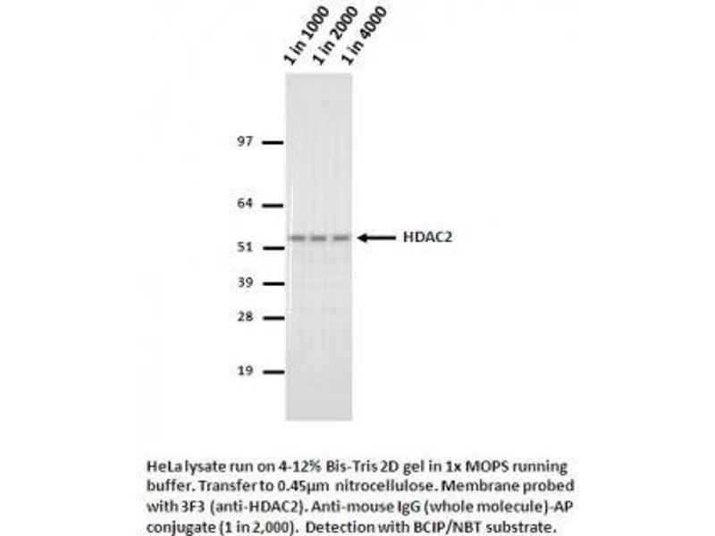 HDAC2 Reactivité: Humain, Souris, Rat WB, IF, IP, IHC (p), ICC, FACS, ChIP Hôte: Souris Monoclonal 3F3 unconjugated