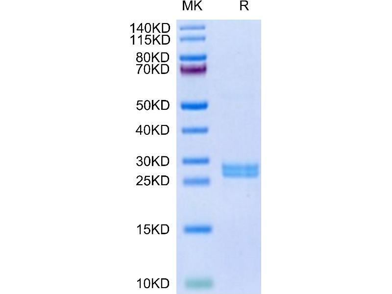 The purity of the protein is greater than 95 % as determined by SDS-PAGE and Coomassie blue staining.