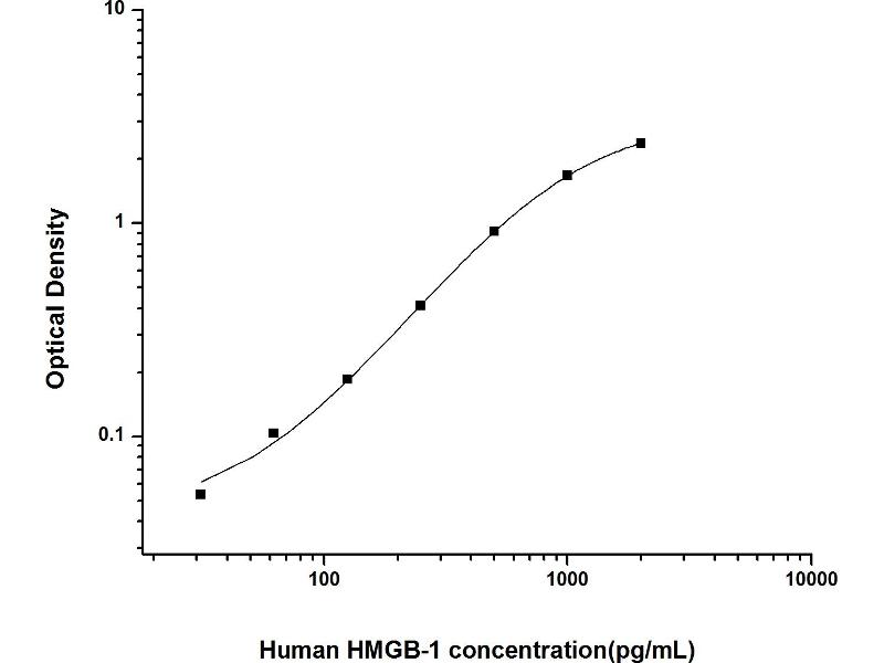 HMGB1 Reactivité: Humain Colorimetric Sandwich ELISA 31.25 pg/mL - 2000 pg/mL Cell Culture Supernatant, Plasma, Serum