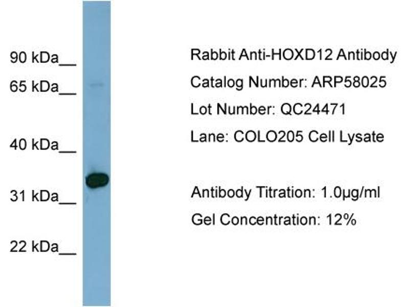 HOXD12 Reactivité: Humain WB, ELISA, IHC (p), IHC (fro) Hôte: Lapin Polyclonal Biotin