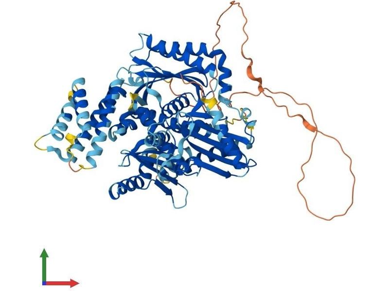 This gene encodes a protein that may play a role in organelle biogenesis associated with melanosomes, platelet dense granules, and lysosomes. The encoded protein is a component of three different protein complexes termed biogenesis of lysosome-related organelles complex (BLOC)-3, BLOC4, and BLOC5. Mutations in this gene are associated with Hermansky-Pudlak syndrome type 1. Multiple transcript variants encoding distinct isoforms have been identified for this gene\; the full-length sequences of some of these have not been determined yet. [provided by RefSeq, Jul 2008].