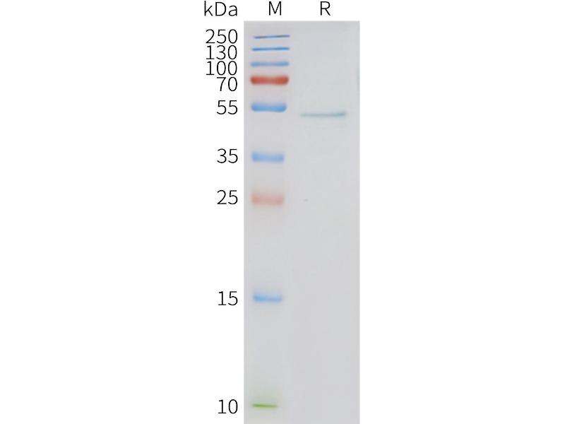 The purity of the protein is greater than 95 % as determined by SDS-PAGE and Coomassie blue staining.