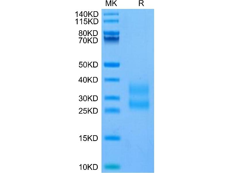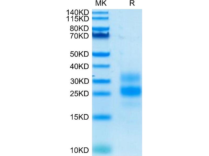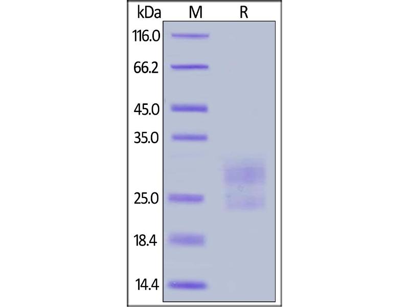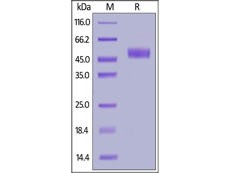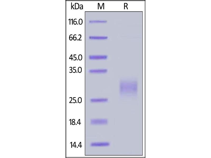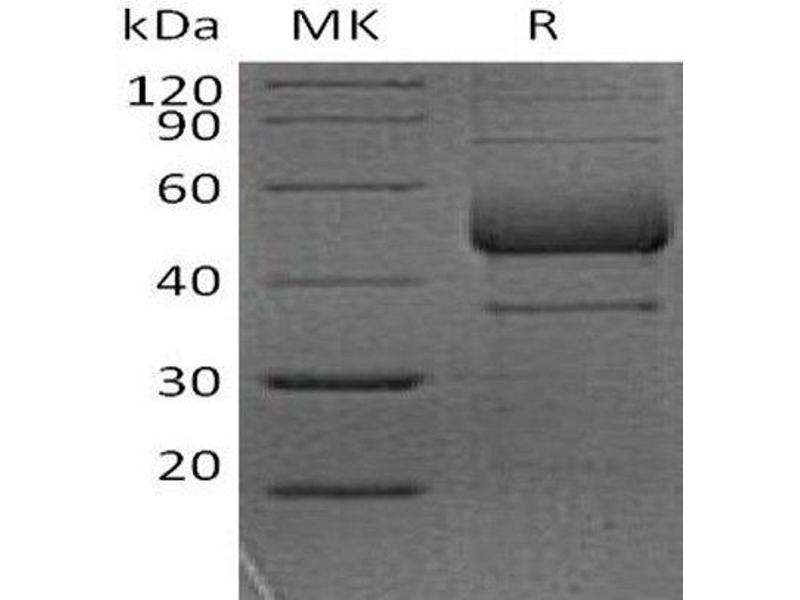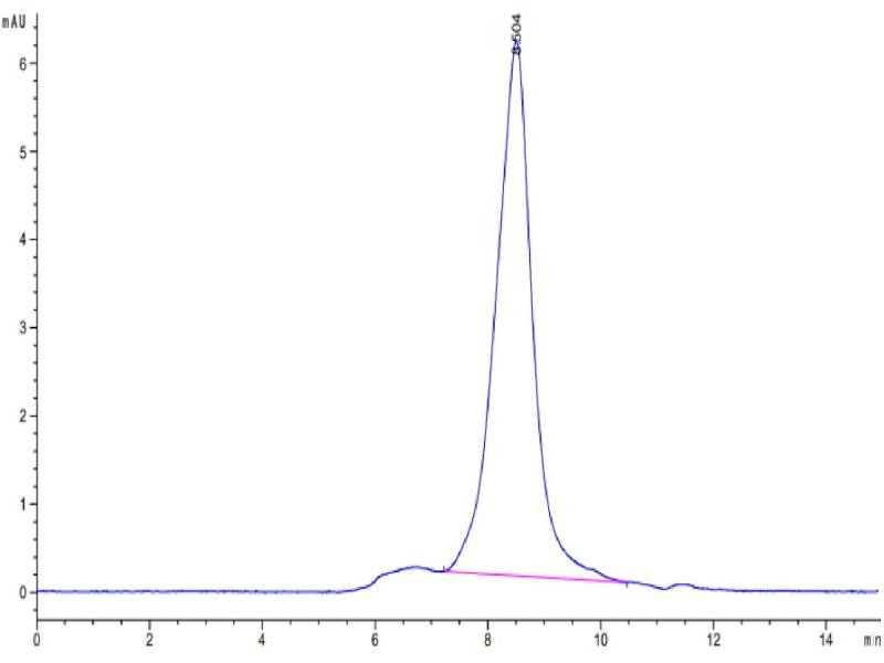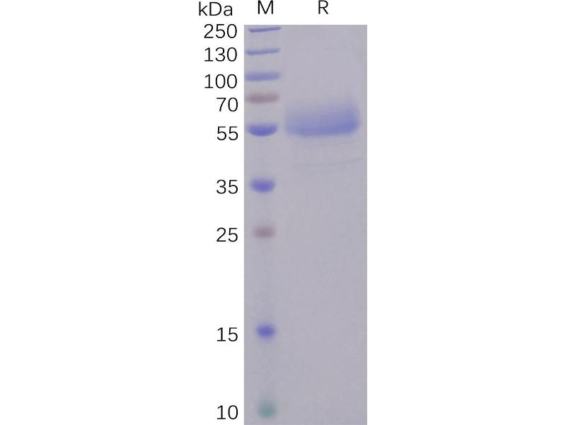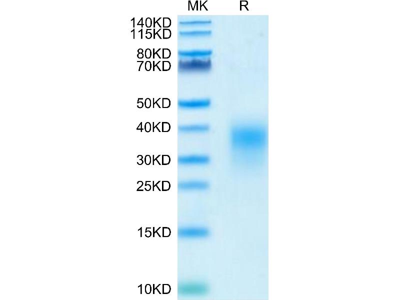 The purity of the protein is greater than 95 % as determined by SDS-PAGE and Coomassie blue staining.