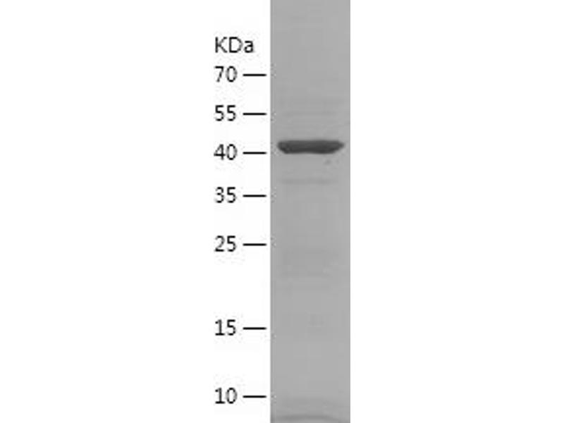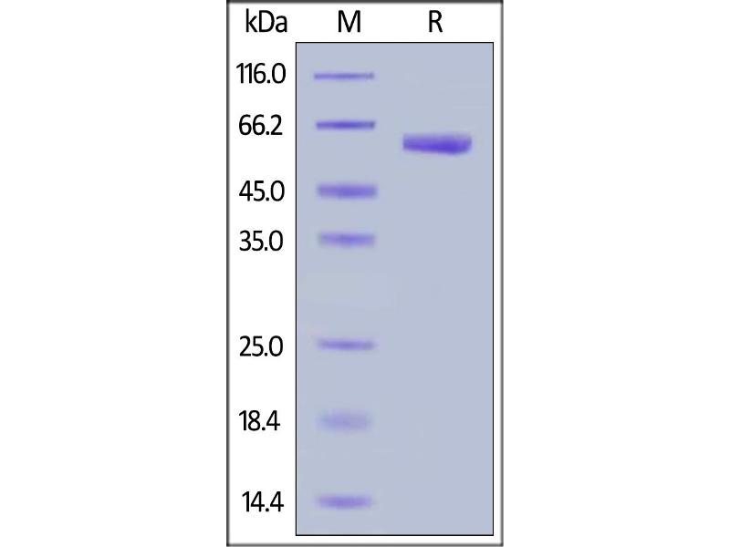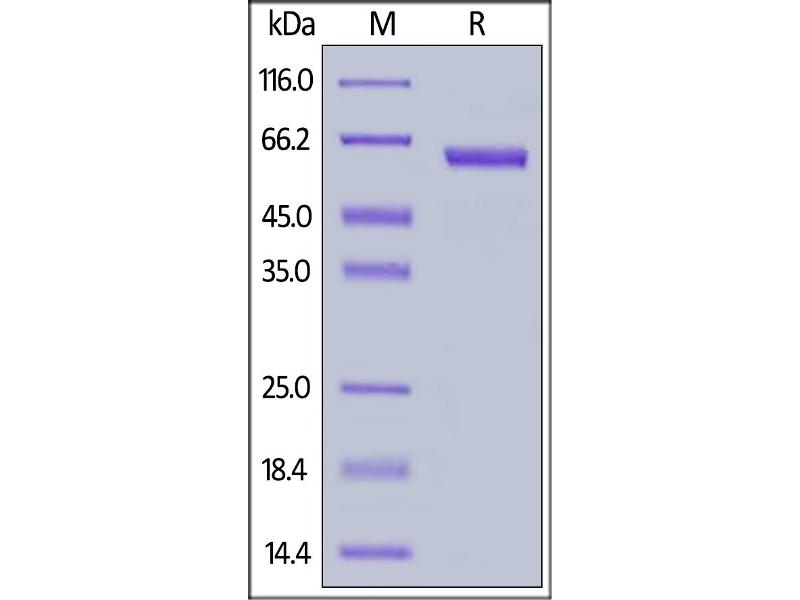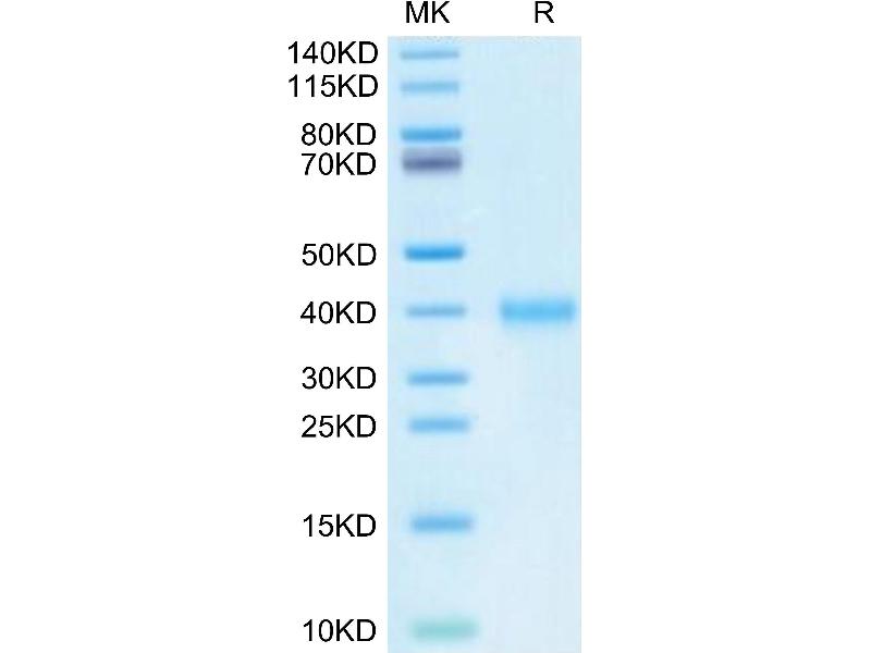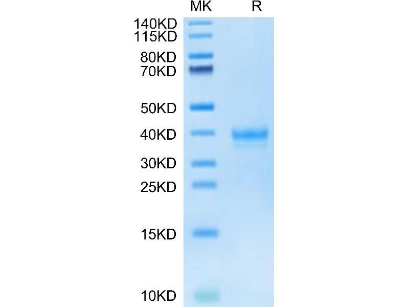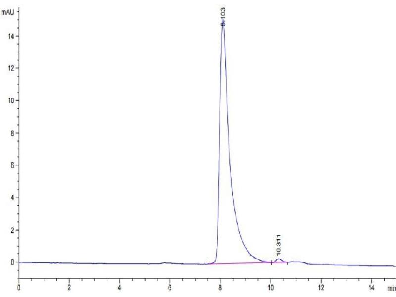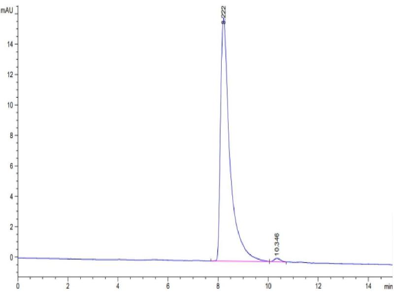 The purity of the protein is greater than 95 % as determined by SDS-PAGE and Coomassie blue staining.