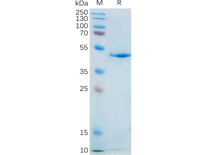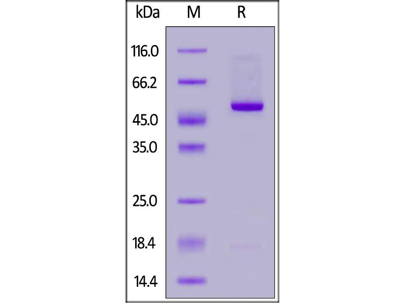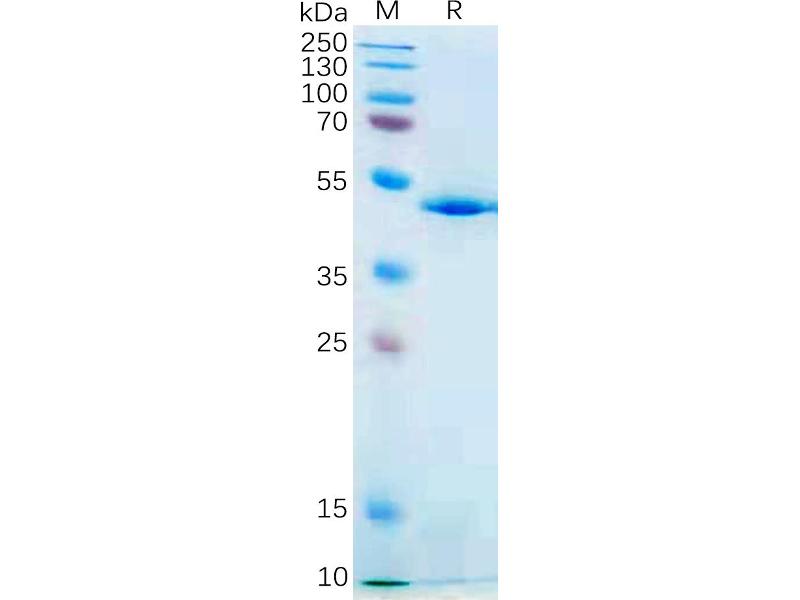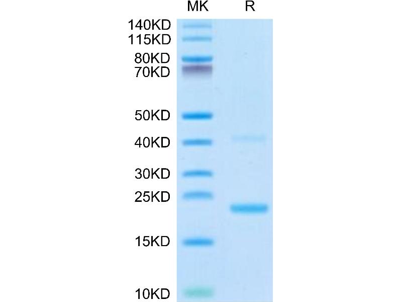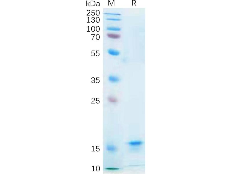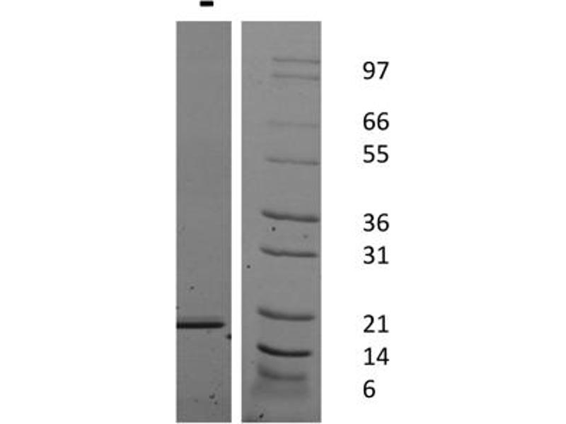 The purity of the protein is greater than 95 % as determined by SDS-PAGE and Coomassie blue staining.