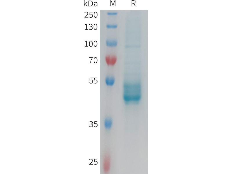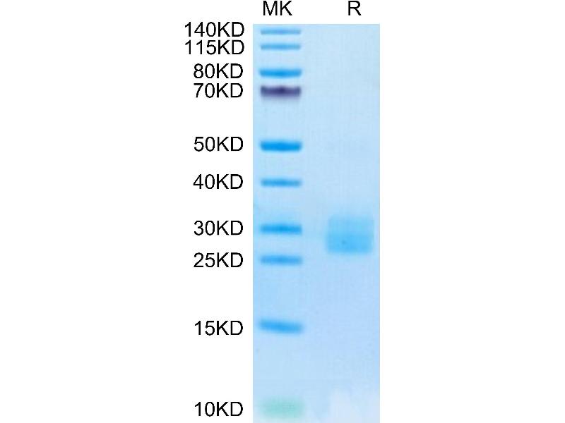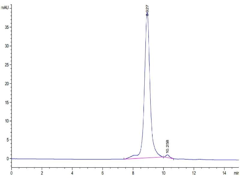 The purity of the protein is greater than 95 % as determined by SDS-PAGE and Coomassie blue staining.