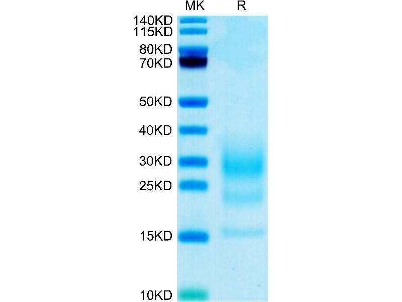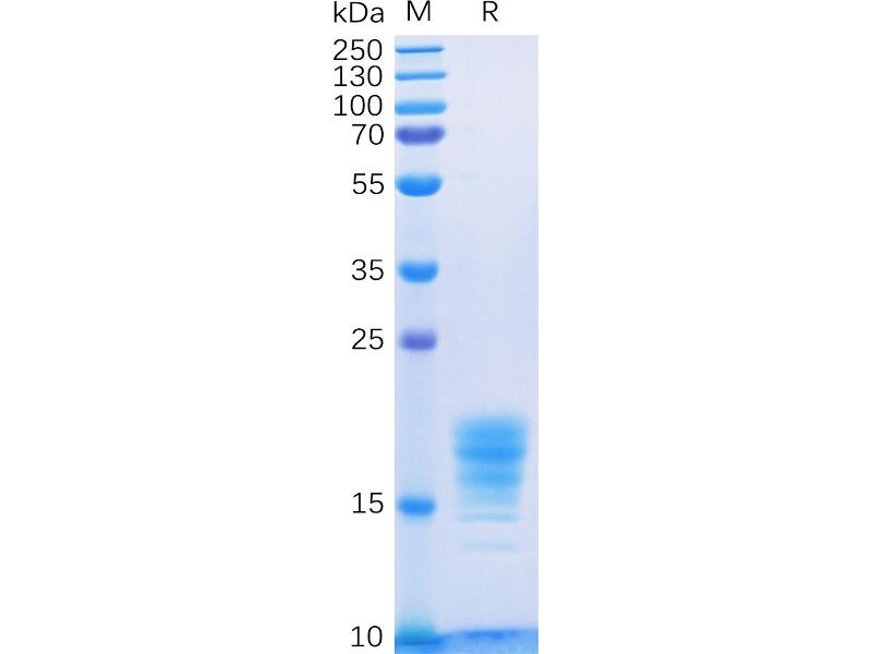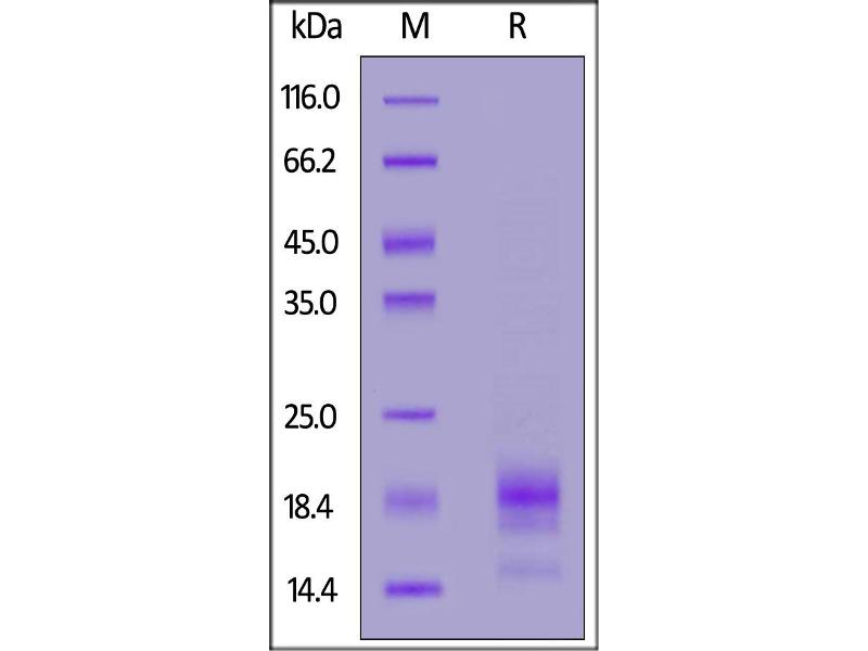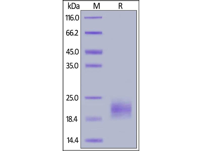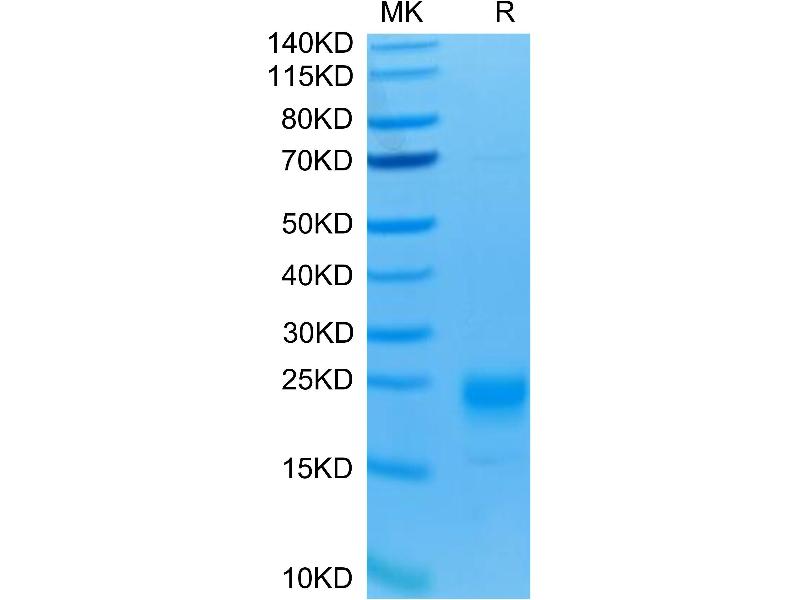 The purity of the protein is greater than 95 % as determined by SDS-PAGE and Coomassie blue staining.