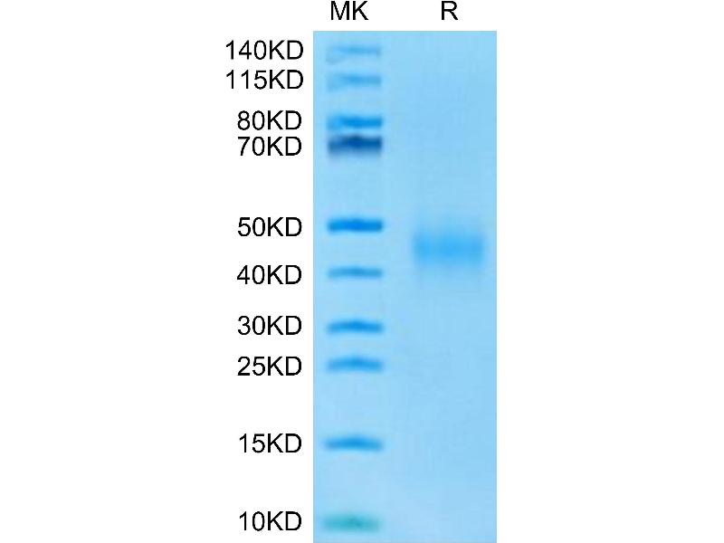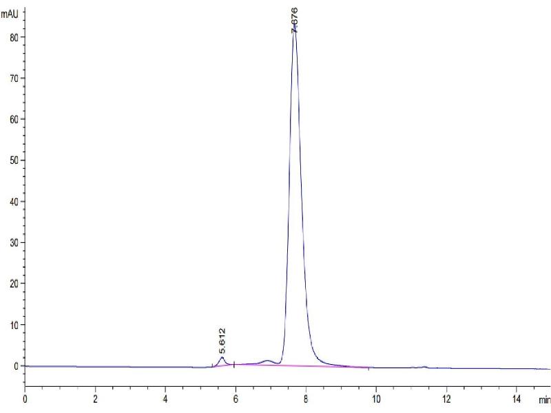 The purity of the protein is greater than 95 % as determined by SDS-PAGE and Coomassie blue staining.