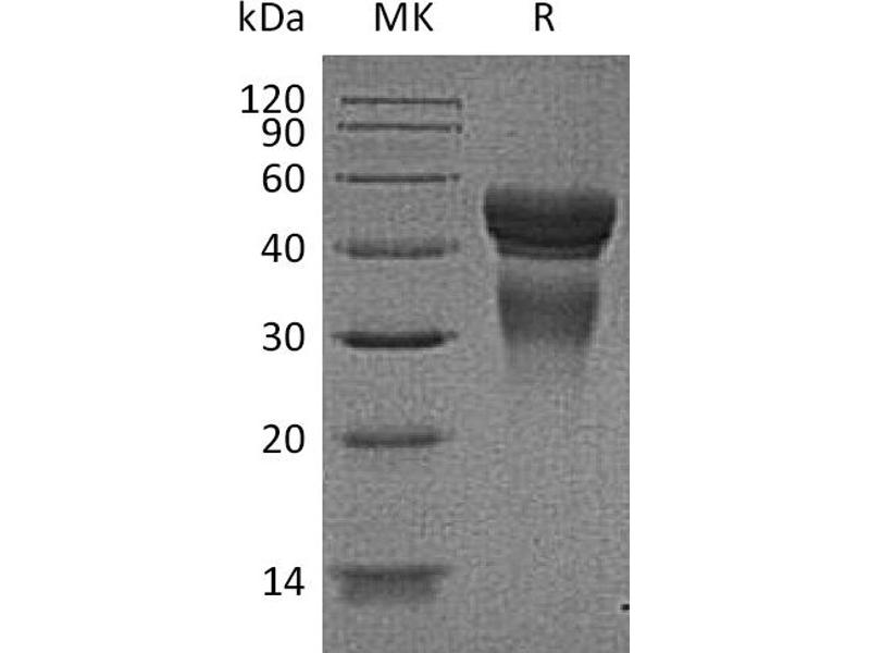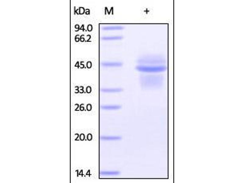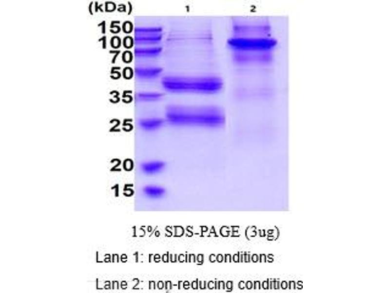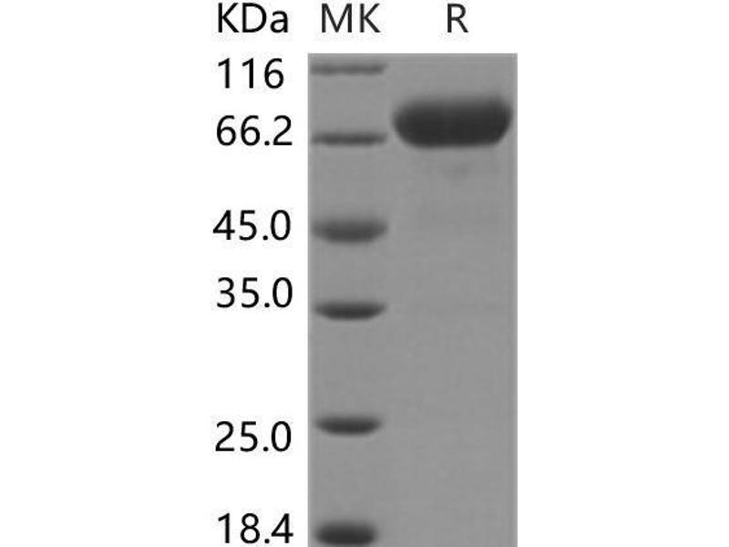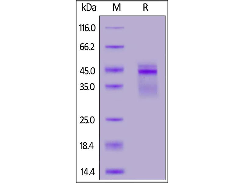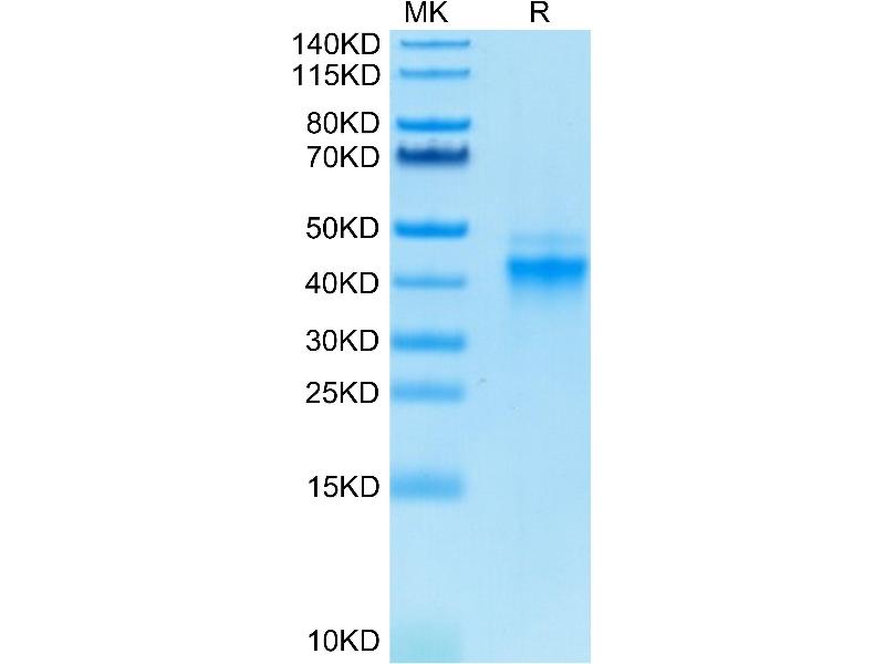 The purity of the protein is greater than 95 % as determined by SDS-PAGE and Coomassie blue staining.