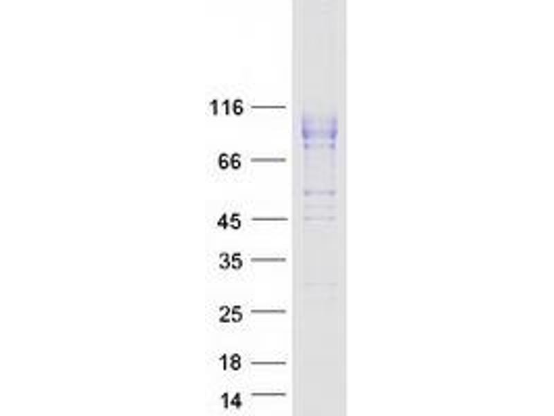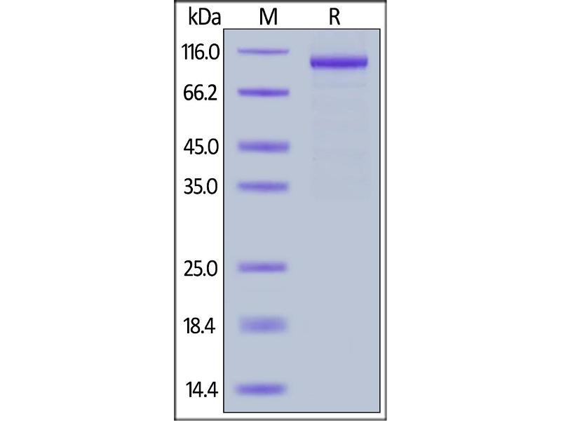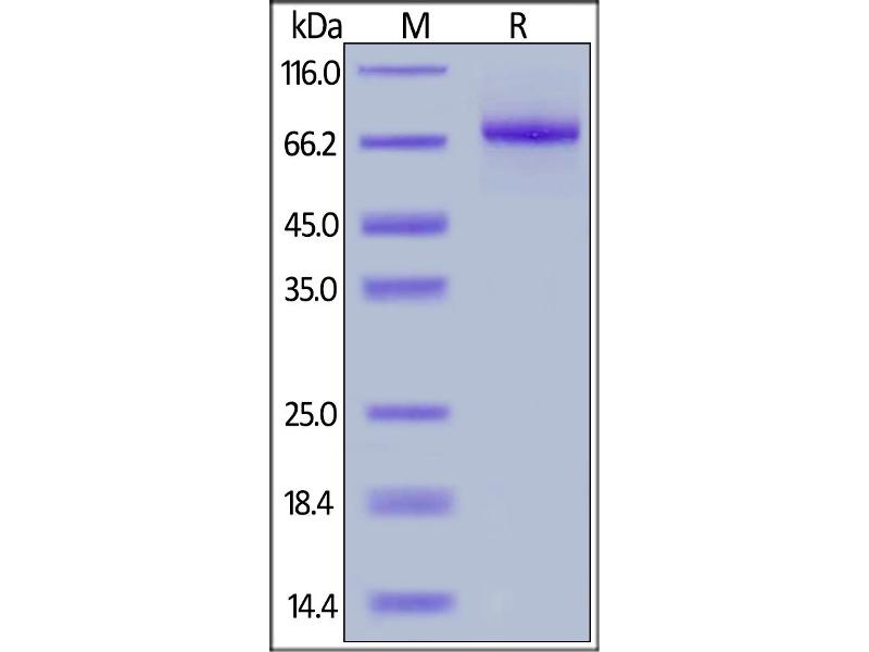The purity of the protein is greater than 85 % as determined by SDS-PAGE and Coomassie blue staining.