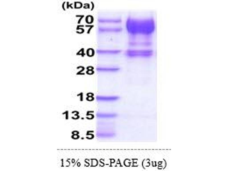 The purity of the protein is greater than 95 % as determined by SDS-PAGE and Coomassie blue staining.