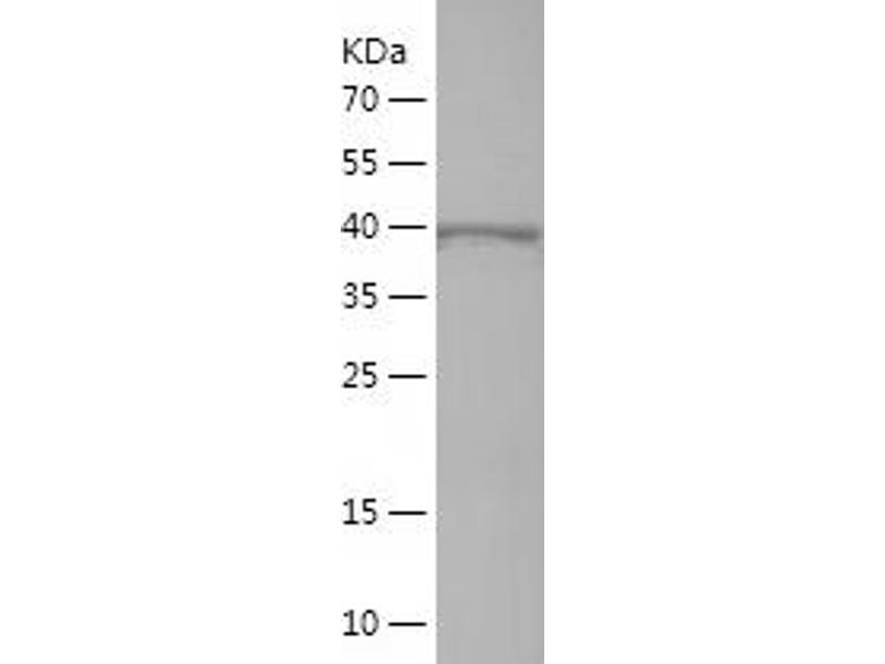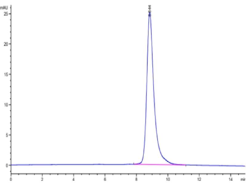 The purity of the protein is greater than 85 % as determined by SDS-PAGE and Coomassie blue staining.