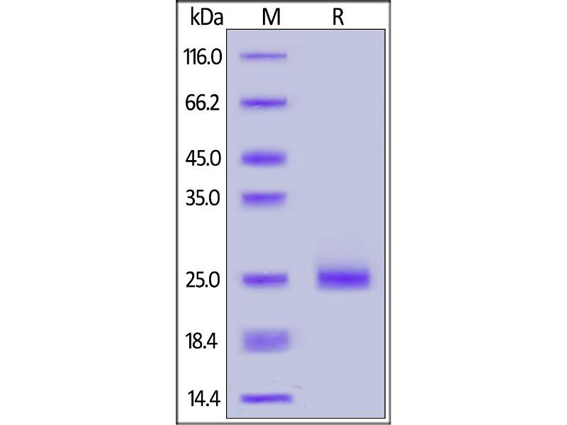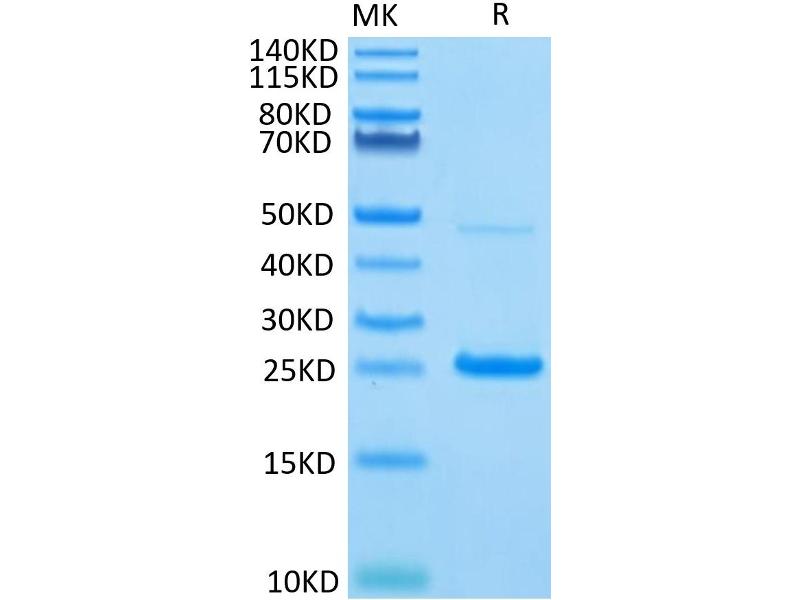The purity of the protein is greater than 95 % as determined by SDS-PAGE and Coomassie blue staining.