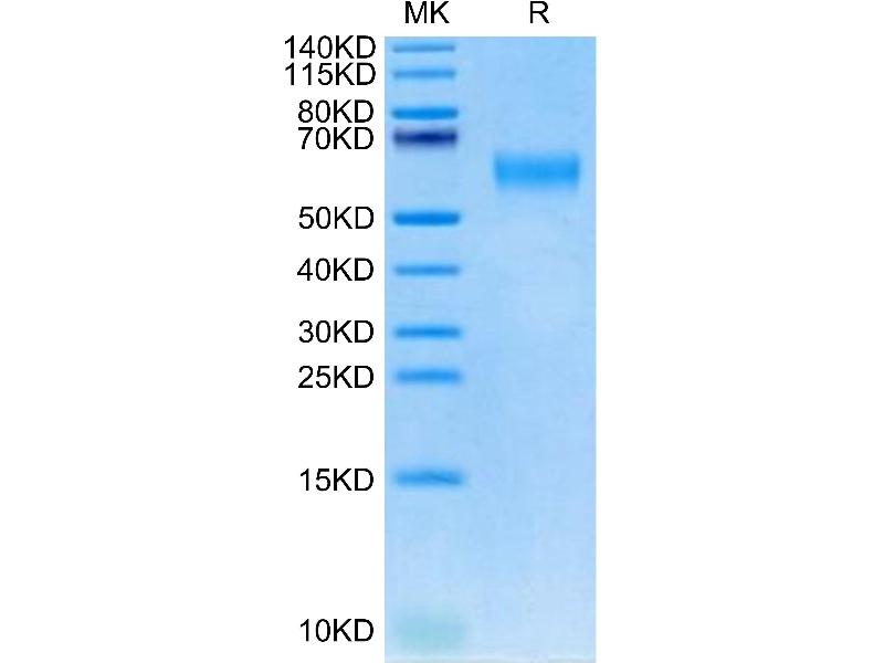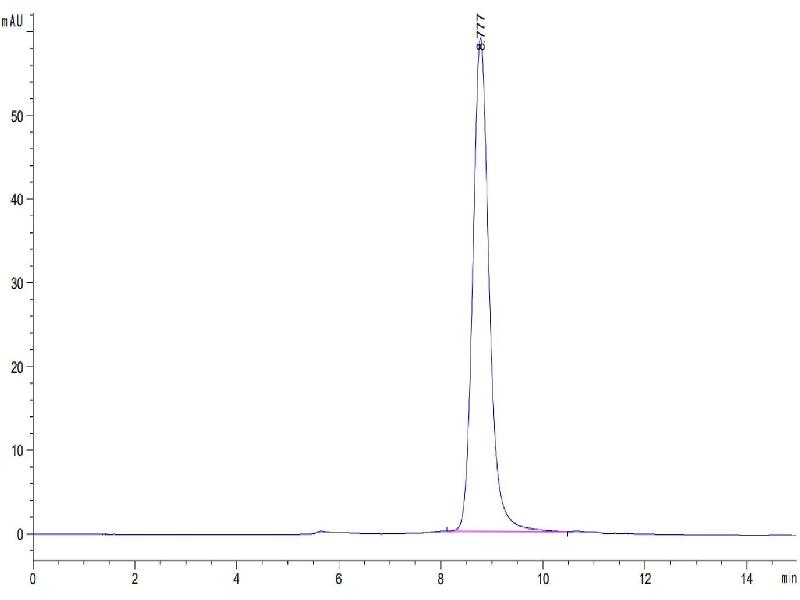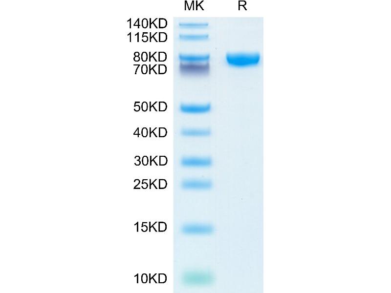 The purity of the protein is greater than 85 % as determined by SDS-PAGE and Coomassie blue staining.