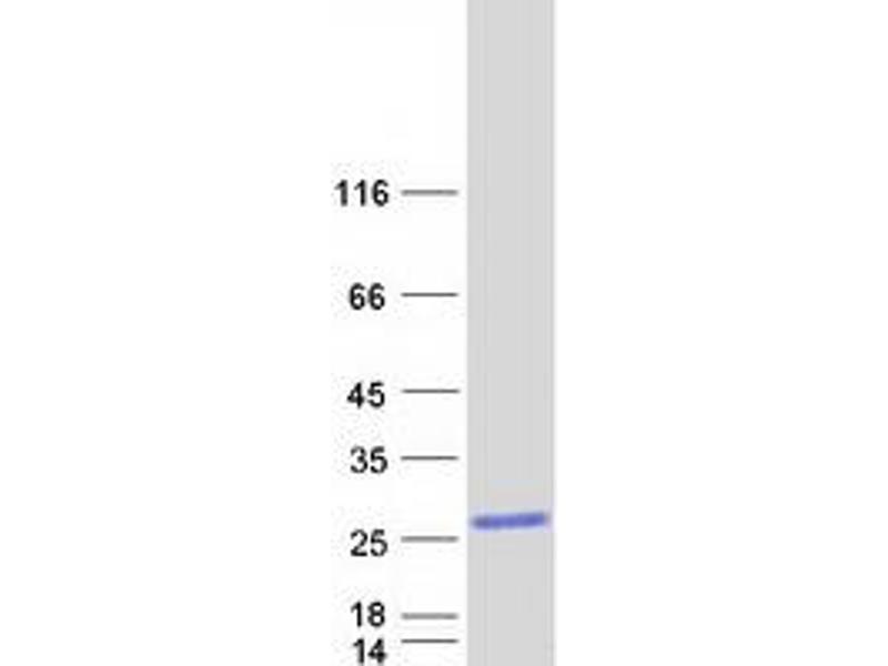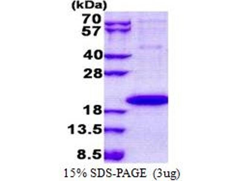 The purity of the protein is greater than 90 % as determined by SDS-PAGE and Coomassie blue staining.