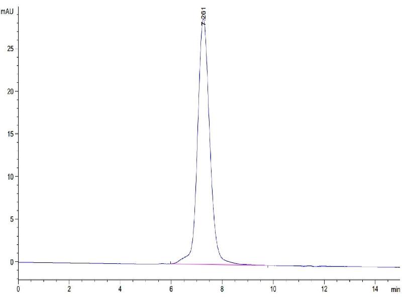 The purity of the protein is greater than 85 % as determined by SDS-PAGE and Coomassie blue staining.