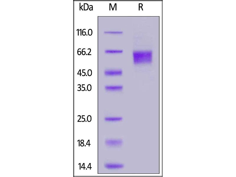The purity of the protein is greater than 95 % as determined by SDS-PAGE and Coomassie blue staining.