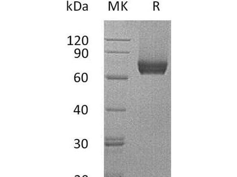 The purity of the protein is greater than 95 % as determined by SDS-PAGE and Coomassie blue staining.