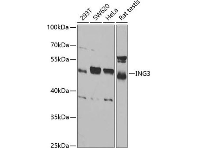 ING3 Reactivité: Humain, Souris, Rat, Chien, Boeuf (Vache), Cobaye, Cheval, Lapin, Poisson zèbre (Danio rerio), Saccharomyces cerevisiae WB, IHC Hôte: Lapin Polyclonal unconjugated