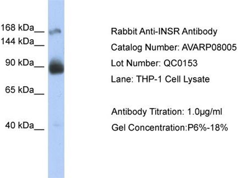 INSR Reactivité: Humain, Souris, Rat, Chien, Singe, Cheval, Cobaye, Porc, Roussette (Chauve-souris) WB Hôte: Lapin Polyclonal unconjugated