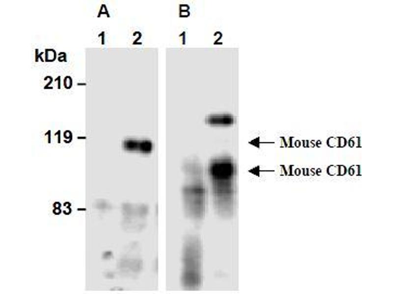 ITGB3 Reactivité: Souris WB, FACS, IP Hôte: Rat Monoclonal 1-55-4 unconjugated