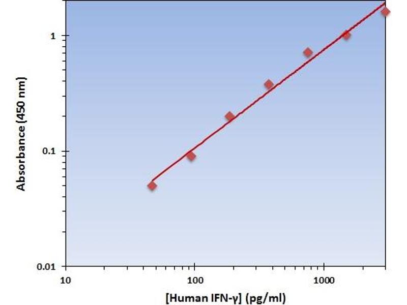 IFNG Reactivité: Lapin Colorimetric Sandwich ELISA 15.6 pg/mL - 1000 pg/mL Cell Culture Supernatant, Cell Lysate, Plasma, Serum, Tissue Homogenate