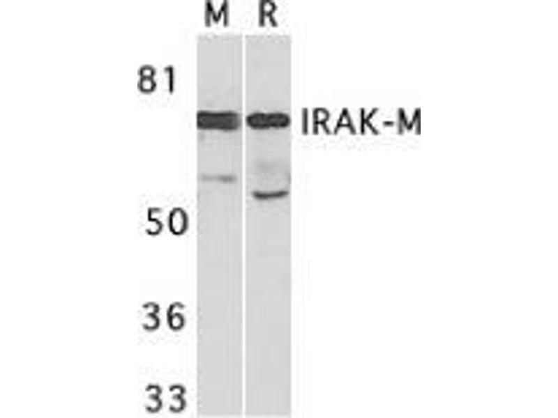 : "IRAK-M is involved in the pathogenesis of early-onset persistent asthma. ..." dans: American journal of human genetics, Vol. 80, Issue 6, pp. 1103-14, (2007) (PubMed).: "Identification and characterization of murine IRAK-M." dans: Biochemical and biophysical research communications, Vol. 293, Issue 5, pp. 1472-7, (2002) (PubMed).