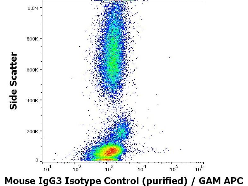 Negative control: The reagent is intended as an isotype control to establish the amount of non-specific antibody binding. For your particular experiment, use the same concentration of this control antibody as the recommended working concentration of the antigen-specific antibody. Also, when working with prediluted antibodies, dilute the isotype control to the same concentration as is the concentration of the antigen-specific antibody in the prediluted antibody solution you are using. If under particular experimental conditions the background signal of the isotype control is too high (usually when working concentrations of used antibodies are above 10 μg/mL of incubation mixture), change the conditions of your experiment to reduce the background.