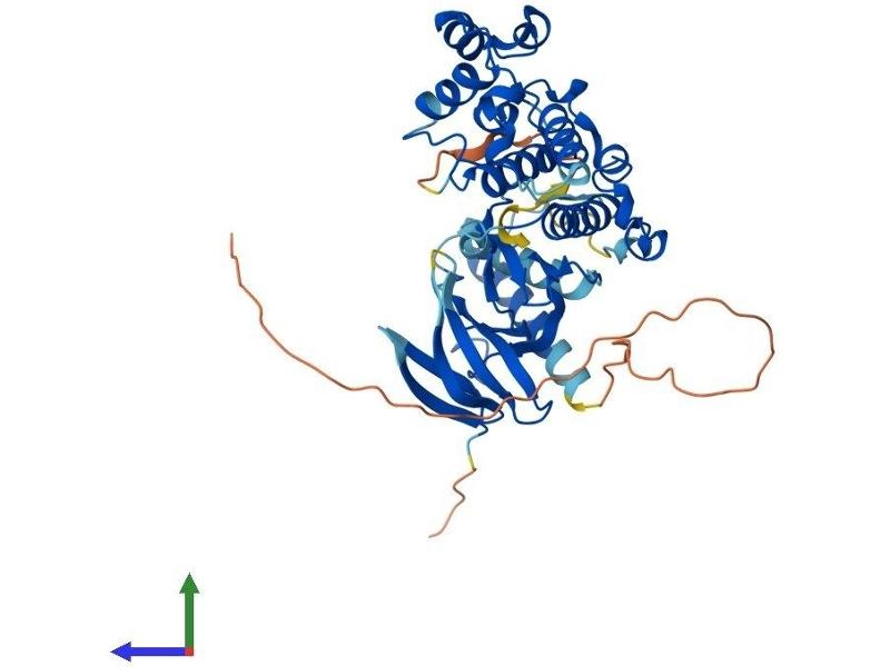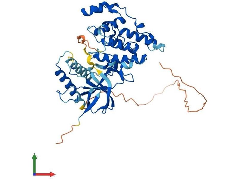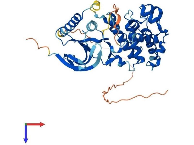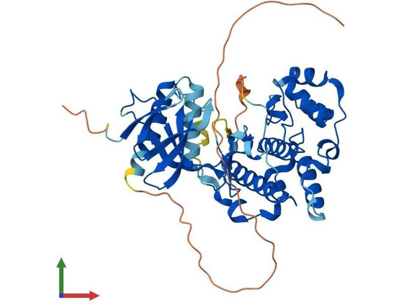 The protein encoded by this gene is a member of the MAP kinase family. MAP kinases act as an integration point for multiple biochemical signals, and are involved in a wide variety of cellular processes such as proliferation, differentiation, transcription regulation and development. This kinase targets specific transcription factors, and thus mediates immediate-early gene expression in response to various cell stimuli. It is most closely related to MAPK8, both of which are involved in UV radiation induced apoptosis, thought to be related to the cytochrome c-mediated cell death pathway. This gene and MAPK8 are also known as c-Jun N-terminal kinases. This kinase blocks the ubiquitination of tumor suppressor p53, and thus it increases the stability of p53 in nonstressed cells. Studies of this gene's mouse counterpart suggest a key role in T-cell differentiation. Several alternatively spliced transcript variants encoding distinct isoforms have been reported. [provided by RefSeq, Sep 2008].