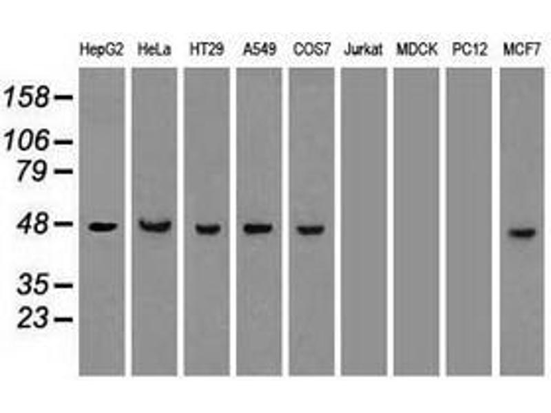 Découvrez des anticorps Cytokeratin 18 fiables issus d’une large sélection de fabricants renommés. Notre portefeuille permet une détection précise de Cytokeratin 18 dans plusieurs espèces, y compris Human, Mouse, Rat, Pig, Dog, Cow, Hamster, Sheep, Cat, Horse, Ferret, Goat, Marmoset, Monkey, Mammalian, Rabbit, Chicken, Zebrafish (Danio rerio), Trout, Guinea Pig, Xenopus laevis, Golden Syrian Hamster, et prend en charge diverses applications de recherche telles que WB, IHC, FACS, IF, ELISA.