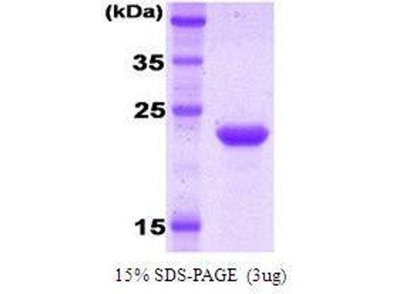 The purity of the protein is greater than 85 % as determined by SDS-PAGE and Coomassie blue staining.