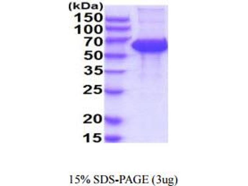 The purity of the protein is greater than 85 % as determined by SDS-PAGE and Coomassie blue staining.