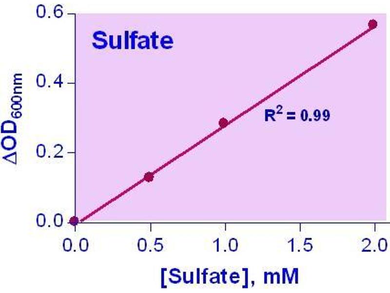 Sensitive and accurate. Detection range 0.02 mM (0.19 mg/dL) to 2 mM (19.2 mg/dL) sulfate in 96-well plate assay.