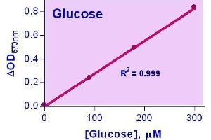 Quantitative determination of glucose by colorimetric (570nm) or fluorometric (530nm/590nm) methods.