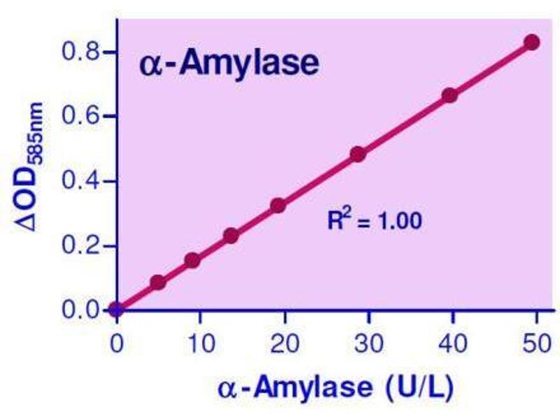Sensitive and accurate. Linear detection range 0.3 to 50 U/L - amylase in 96-well plate assay.
