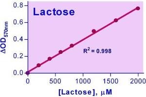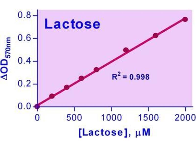 Quantitative determination of lactose by colorimetric (570nm) or fluorimetric (530nm/590nm) methods.