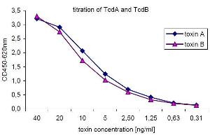 Standard controls: The standard control toxins are recombinant toxins with a concentration of 80 ng/ml (equivalent to the native C. difficile toxins) as determined by the method of Bradford.
