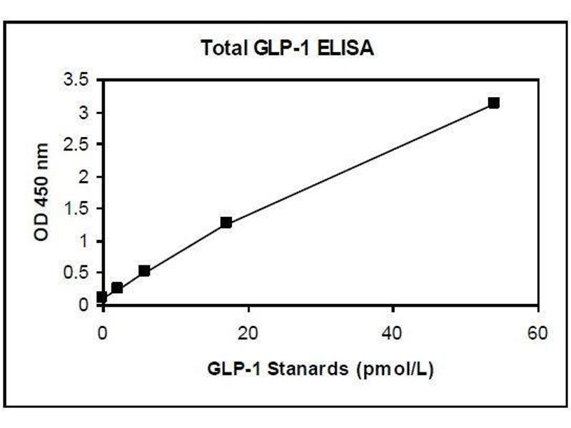 - This ELISA is designed, developed and produced for the quantitative measurement of GLP-1 (7-36) and (9-36) in plasma sample. The assay utilizes the two-site sandwich technique with two selected GLP-1 antibodies. This assay used the same assay calibrators and tracer antibodies as the Active GLP-1 (7-36) ELISA (catalog: KT-871).Assay standards, controls and test samples are directly added to wells of a microplate that is coated with streptavidin. Subsequently, a mixture of biotinylated GLP-1 specific antibody and a horseradish peroxidase (HRP)-conjugated GLP-1 specific antibody is added to each well. After the first incubation period, a sandwich immunocomplex of Streptavidin Biotin-Antibody GLP-1(7-36)/(9-36) HRP-conjugated antibody is formed and attached to the wall of the plate. The unbound HRP-conjugated antibody is removed in a subsequent washing step. For the detection of this immunocomplex, each well is then incubated with a substrate solution in a timed reaction and then measured in a spectrophotometric microplate reader. The enzymatic activity of the immunocomplex bound to GLP-1 (7-36)/(9-36) on the wall of the microtiter well is directly proportional to the amount of Total GLP-1 in the sample.