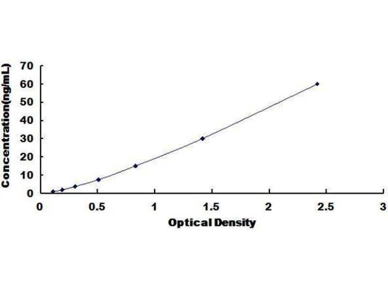 The microtiter plate provided in this kit has been pre-coated with an antibody specific to the index. Standards or samples are then added to the appropriate microtiter plate wells with a biotin-conjugated antibody preparation specific to the index. Next, Avidin conjugated to Horseradish Peroxidase (HRP) is added to each microplate well and incubated. After TMB substrate solution is added, only those wells that contain the index, biotin-conjugated antibody and enzyme-conjugated Avidin will exhibit a change in color. The enzyme-substrate reaction is terminated by the addition of sulphuric acid solution and the color change is measured spectrophotometrically at a wavelength of 450nm ± 10nm. The concentration of the index in the samples is then determined by comparing the O.D. of the samples to the standard curve.