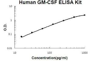 - human GM-CSF ELISA Kit was based on standard sandwich enzyme-linked immune-sorbent assay technology. A monoclonal antibody from mouse specific for GM-CSF has been precoated onto 96-well plates. Standards(E.coli, A18-E144) and test samples are added to the wells, a biotinylated detection polyclonal antibody from goat specific for GM-CSF is added subsequently and then followed by washing with PBS or TBS buffer. Avidin-Biotin-Peroxidase Complex was added and unbound conjugates were washed away with PBS or TBS buffer. HRP substrate TMB was used to visualize HRP enzymatic reaction. TMB was catalyzed by HRP to produce a blue color product that changed into yellow after adding acidic stop solution. The density of yellow is proportional to the human GM-CSF amount of sample captured in plate.