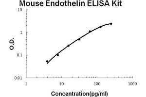 - mouse Endothelin ELISA Kit is based on standard sandwich enzyme-linked immune-sorbent assay technology. A monoclonal antibody from rat specific for Endothelin has been precoated onto 96-well plates. Standards (mouse peptide,C53-W73) and test samples are added to the wells, a biotinylated detection polyclonal antibody from goat specific for Endothelin is added subsequently and then followed by washing with PBS or TBS buffer. Avidin-Biotin-Peroxidase Complex is added and unbound conjugates are washed away with PBS or TBS buffer. HRP substrate TMB are used to visualize HRP enzymatic reaction. TMB is catalyzed by HRP to produce a blue color product that changed into yellow after adding acidic stop solution. The density of yellow is proportional to the mouse Endothelin amount of sample captured in plate.