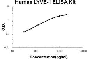 - human LYVE-1 ELISA Kit was based on standard sandwich enzyme-linked immune-sorbent assay technology. A monoclonal antibody from mouse specific for LYVE-1 has been precoated onto 96-well plates. Standards(NSO, S24-T238) and test samples are added to the wells, a biotinylated detection polyclonal antibody from goat specific for LYVE-1 is added subsequently and then followed by washing with PBS or TBS buffer. Avidin-Biotin-Peroxidase Complex was added and unbound conjugates were washed away with PBS or TBS buffer. HRP substrate TMB was used to visualize HRP enzymatic reaction. TMB was catalyzed by HRP to produce a blue color product that changed into yellow after adding acidic stop solution. The density of yellow is proportional to the human LYVE-1 amount of sample captured in plate.