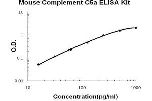 - mouse Complement C5a ELISA Kit was based on standard sandwich enzyme-linked immune-sorbent assay technology. A monoclonal antibody from rat specific for Complement C5a has been precoated onto 96-well plates. Standards(E.coli, N679-R755) and test samples are added to the wells, a biotinylated detection polyclonal antibody from goat specific for Complement C5a is added subsequently and then followed by washing with PBS or TBS buffer. Avidin-Biotin-Peroxidase Complex was added and unbound conjugates were washed away with PBS or TBS buffer. HRP substrate TMB was used to visualize HRP enzymatic reaction. TMB was catalyzed by HRP to produce a blue color product that changed into yellow after adding acidic stop solution. The density of yellow is proportional to the mouse Complement C5a amount of sample captured in plate.