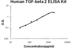 Aliquot 0.1 mL per well of the 2000pg/mL,1000pg/mL, 500pg/mL, 250pg/mL, 125pg/mL, 62.5pg/mL, 31.2pg/mL human TGF-beta 2 standard solutions into the precoated 96-well plate. Add 0.1 mL of the sample diluent buffer into the control well (Zero well). Add 0.1 mL of each properly diluted sample of activated human cell culture supernates, serum or plasma(heparin, EDTA, citrate) to each empty well. See "Sample Dilution Guideline" above for details. It is recommended that each human TGF-beta 2 standard solution and each sample be measured in duplicate.