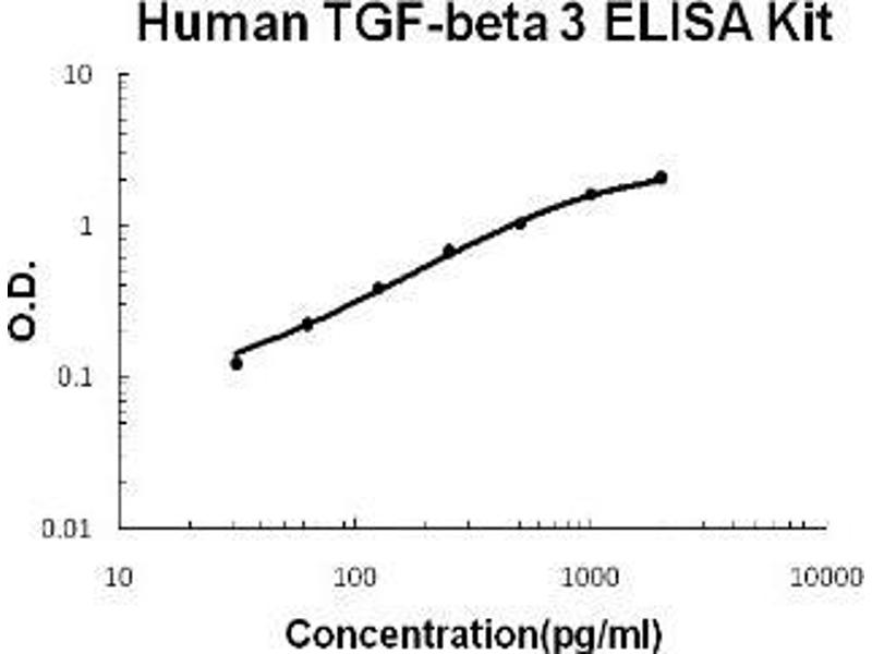 Aliquot 0.1 mL per well of the 2000pg/mL,1000pg/mL, 500pg/mL, 250pg/mL, 125pg/mL, 62.5pg/mL, 31.2pg/mL human TGF-beta 3 standard solutions into the precoated 96-well plate. Add 0.1 mL of the sample diluent buffer into the control well (Zero well). Add 0.1 mL of each properly diluted sample of activated human cell culture supernates, serum, plasma(EDTA) or urine to each empty well. See "Sample Dilution Guideline" above for details. It is recommended that each human TGF-beta 3 standard solution and each sample be measured in duplicate.