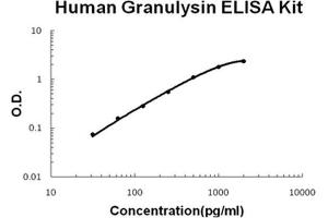 - human Granulysin ELISA Kit was based on standard sandwich enzyme-linked immune-sorbent assay technology. A monoclonal antibody from mouse specific for Granulysin has been precoated onto 96-well plates. Standards(NSO, M1-L145) and test samples are added to the wells, a biotinylated detection polyclonal antibody from goat specific for Granulysin is added subsequently and then followed by washing with PBS or TBS buffer. Avidin-Biotin-Peroxidase Complex was added and unbound conjugates were washed away with PBS or TBS buffer. HRP substrate TMB was used to visualize HRP enzymatic reaction. TMB was catalyzed by HRP to produce a blue color product that changed into yellow after adding acidic stop solution. The density of yellow is proportional to the human Granulysin amount of sample captured in plate.