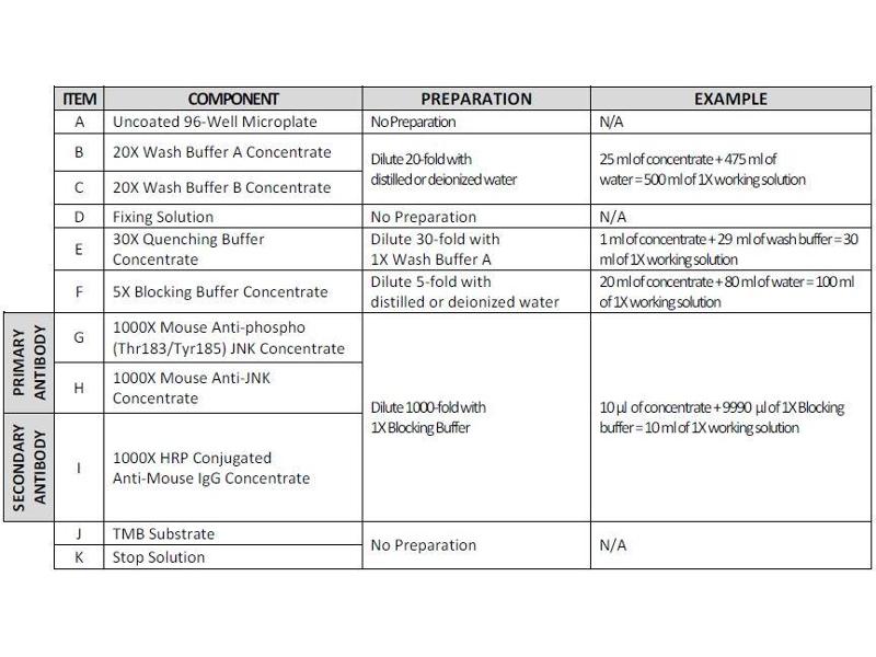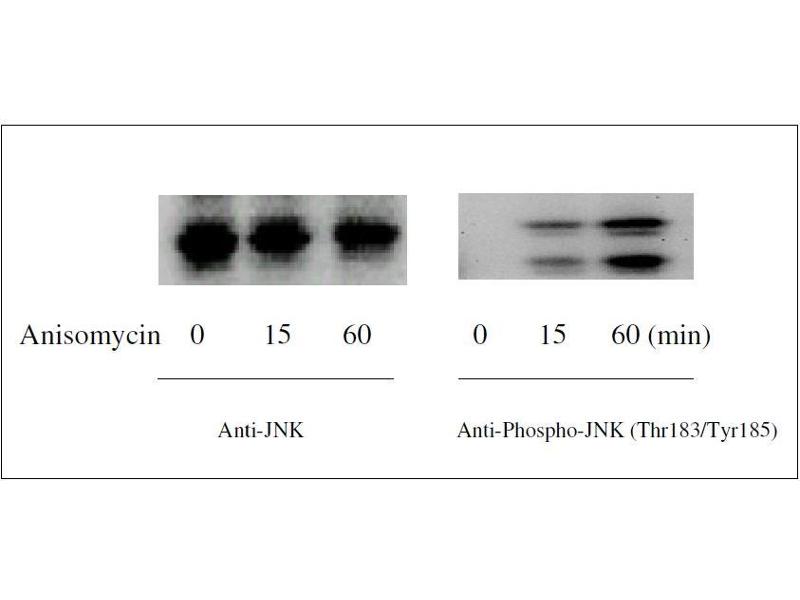 - The antibodies provided in this kit recognizes human, mouse and rat JNK phosphorylated at sites Thr183 and Tyr185 as well as total JNK for comparison.