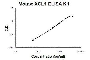 - mouse XCL1 ELISA Kit was based on standard sandwich enzyme-linked immune-sorbent assay technology. A monoclonal antibody from rat specific for XCL1 has been precoated onto 96-well plates. Standards (E. coli, V22-G114) and test samples are added to the wells, a biotinylated detection polyclonal antibody from goat specific for XCL1is added subsequently and then followed by washing with PBS or TBS buffer. Avidin-Biotin-Peroxidase Complex was added and unbound conjugates were washed away with PBS or TBS buffer. HRP substrate TMB was used to visualize HRP enzymatic reaction. TMB was catalyzed by HRP to produce a blue color product that changed into yellow after adding acidic stop solution. The density of yellow is proportional to the mouse XCL1 amount of sample captured in plate.
